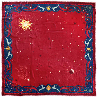 “Beautiful as the moon, bright as the sun, majestic as armies under their standards”: the design of this silk bandana was inspired by this quotation. Discover the full story behind this design in the large size format of this silk scarf.